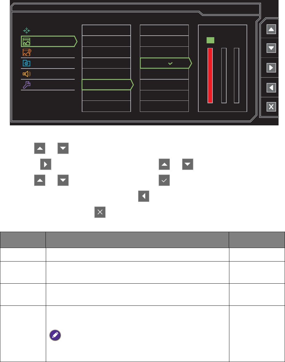 3. Select to go to a sub menu, and then use or to select a menu item.