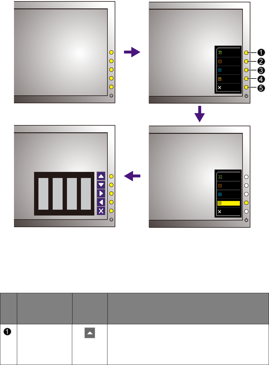 All OSD (On Screen Display) menus can be accessed by the control keys. You can use the OSD