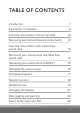 TABLE OF CONTENTS Introduction 7 Description of features 8 Inserting instruments with an earmold 10 Removing earmold and hearing instruments 12 Inserting instruments with a Spira Flex sound tube 13 Removing your instruments and Spira Flex sound tube 14 Operating your instruments (ON/OFF) 15 Changing the volume level 16 Changing programs 17 Telecoil function 18 Telephone use 19 Changing the battery 21 Data logging and learning 24 Direct Audio Input and FM 25 3