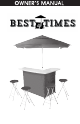 ASSEMBLY INSTRUCTIONS Assembling the Bar The following illustrations show step by step instructions for assembling the Bar. Contact Best of Times if you have any questions at info@bestoftimesusa.com/888-499-6737 2. Extend the frame to the left. 1.Line up bar frame as shown. Towards Front 4. Rotate the 3rd panel 90 ° as shown. 3. Rotate the end panel around 180 ° 5. Extend and unfold the remaining panels to the right. ...