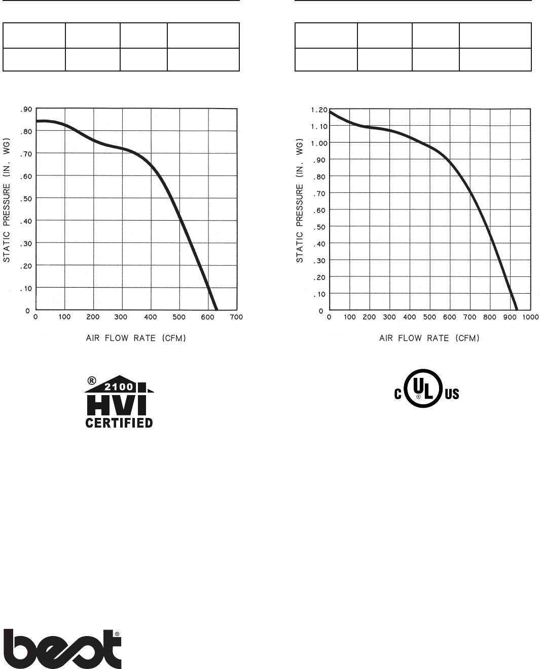 performance is rated at 0.1 in. static pressure, based