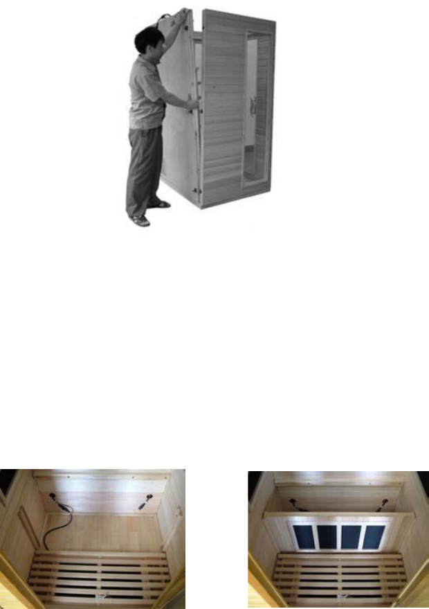 each side panel. The emitter grid will face outward (toward the front of the sauna). Push the