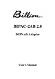BIPAC-2AB 2.0 User’s Manual The BIPAC-2AB 2.0 ISDN a/b Adaptor The BIPAC-2AB 2.0 ISDN a/b adaptor allows you to make the transition from analog to digital without having to discard all your present analog devices. The BIPAC-2AB 2.0 provides an interface between your ISDN line and present analog devices such as your telephone. With a full array of convenient functions such as call waiting, call holding, call transfer, call forwarding and speed dialing among others, your BIPAC-2AB 2.