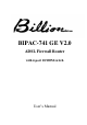 Billion BIPAC-741 GE V2.0 ADSL Firewall Router Problems with the WAN Interface ............................................................................................. 42 Problems with the LAN Interface .............................................................................................. 42 APPENDIX A .................................................................... 43 SPECIFICATION ............................................................................................................