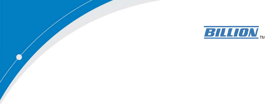 SHDSL VPN Firewall Bridge/Router APPENDIX A: Product Support and Contact Information Most problems can be solved by referring to the Troubleshooting section in the User’s Manual. If you cannot resolve the problem with the Troubleshooting chapter, please contact the dealer where you purchased this product. Contact Billion AUSTRALIA http://www.billion.com.au/ ©2006 Billion Electric Co., Ltd. PC Range P/L. All Rights Reserved. WORLDWIDE http://www.billion.