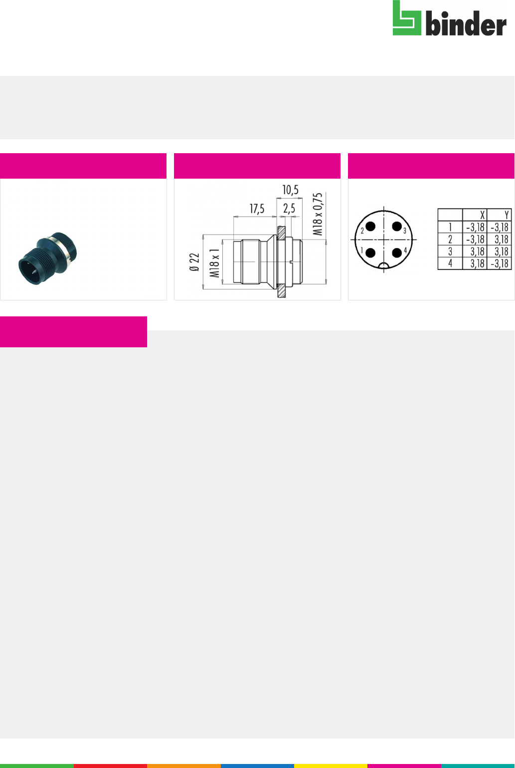 Bezeichnung M18 Flanschstecker, Polzahl: 4, nicht geschirmt, löten, IP67