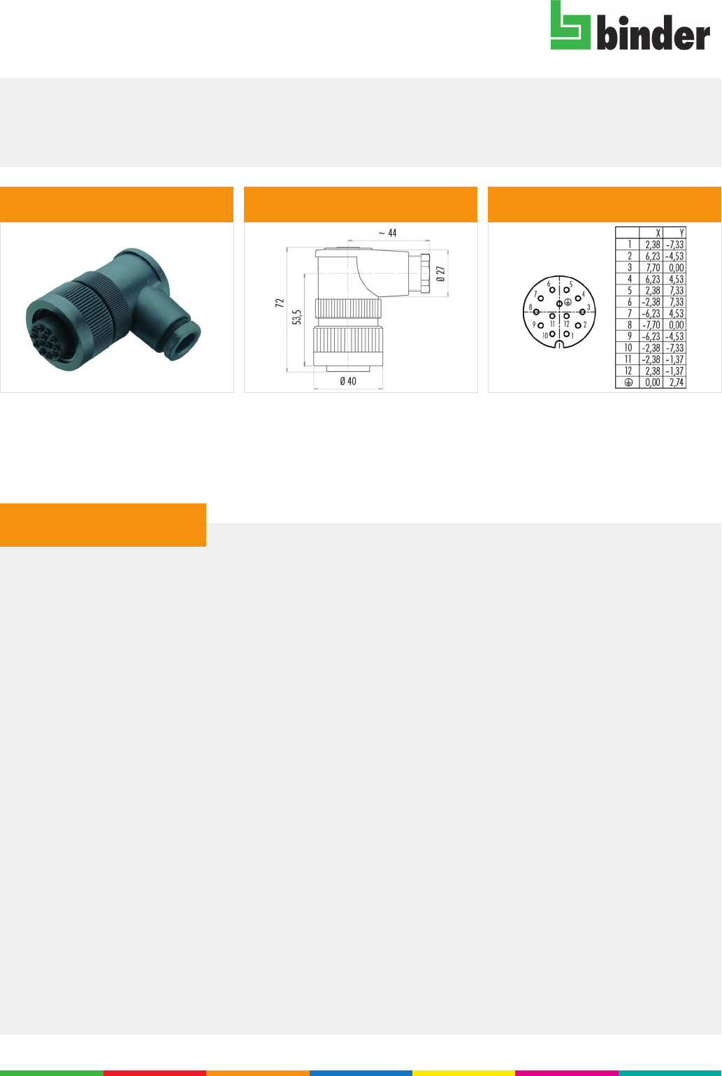 Bezeichnung RD30 Winkeldose, Polzahl: 12+PE, 10.0 - 12.0 mm, nicht schirmbar, löten, IP65