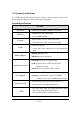 Table 2-4(D) Special Function key define 1. Produces a space key 2. To enable this function by pressing ︼ , first, and then pressing key. 3. You want to disable this function, you still need to press key, then press key again. 1. The “Delete “ function delete the next character forward each time Delete , key 2. To do “Delete"function by pressing first, and then pressing key each time. 1. The “Tab “function is to move the cursor to the next tab stop or the next control (on a form) , Tab 2.
