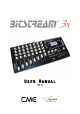 USER MANUAL Description of the front and rear panels of the Bitstream 3X Front: Type of controls and numbering 1 Joytsick - 2 axes - 1 button 1 Ribbon Controler Hold Key Up-Down Selection keys Contrast control Shift Key MIDI channels 5 Transport Buttons + 5 assignable buttons (SHIFT activated) Groups Selection of scenes Access to scenes Access to Automations Selection Encoder 1 Button encoder 8 Buttons EDIT Buttons 1 LFO 1 Cross-Fader Mode Key 8 linear sliders 35 rotary potentiometers Assign