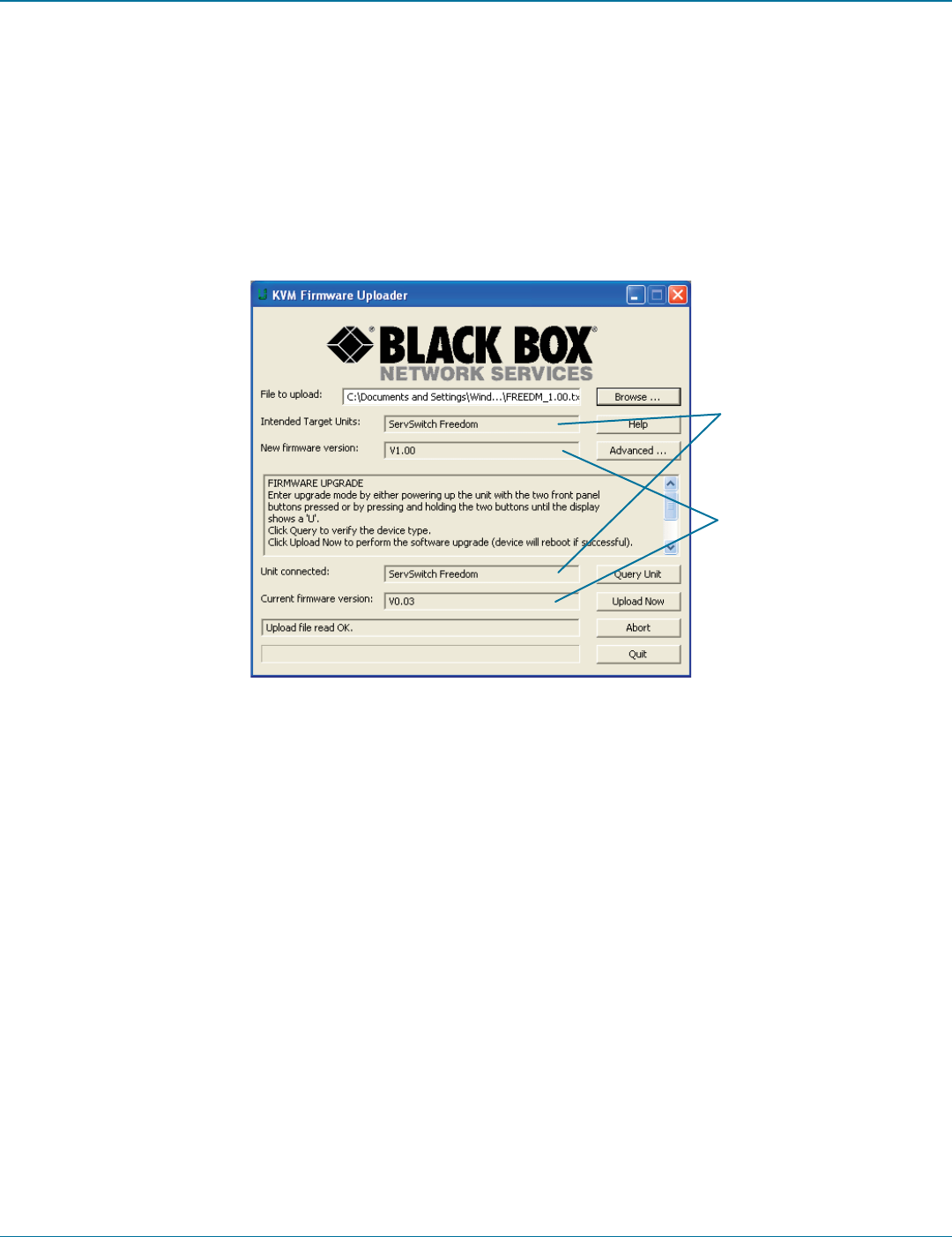 you may have an incorrect upgrade file; check with Black Box Technical Support before proceeding. Check also that the ‘New