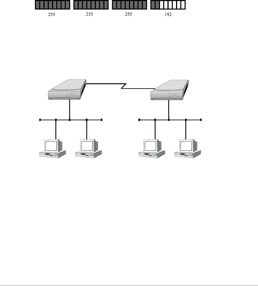subnets. In this example, specifying a mask size of 26 will produce a subnet size of 2 bits.