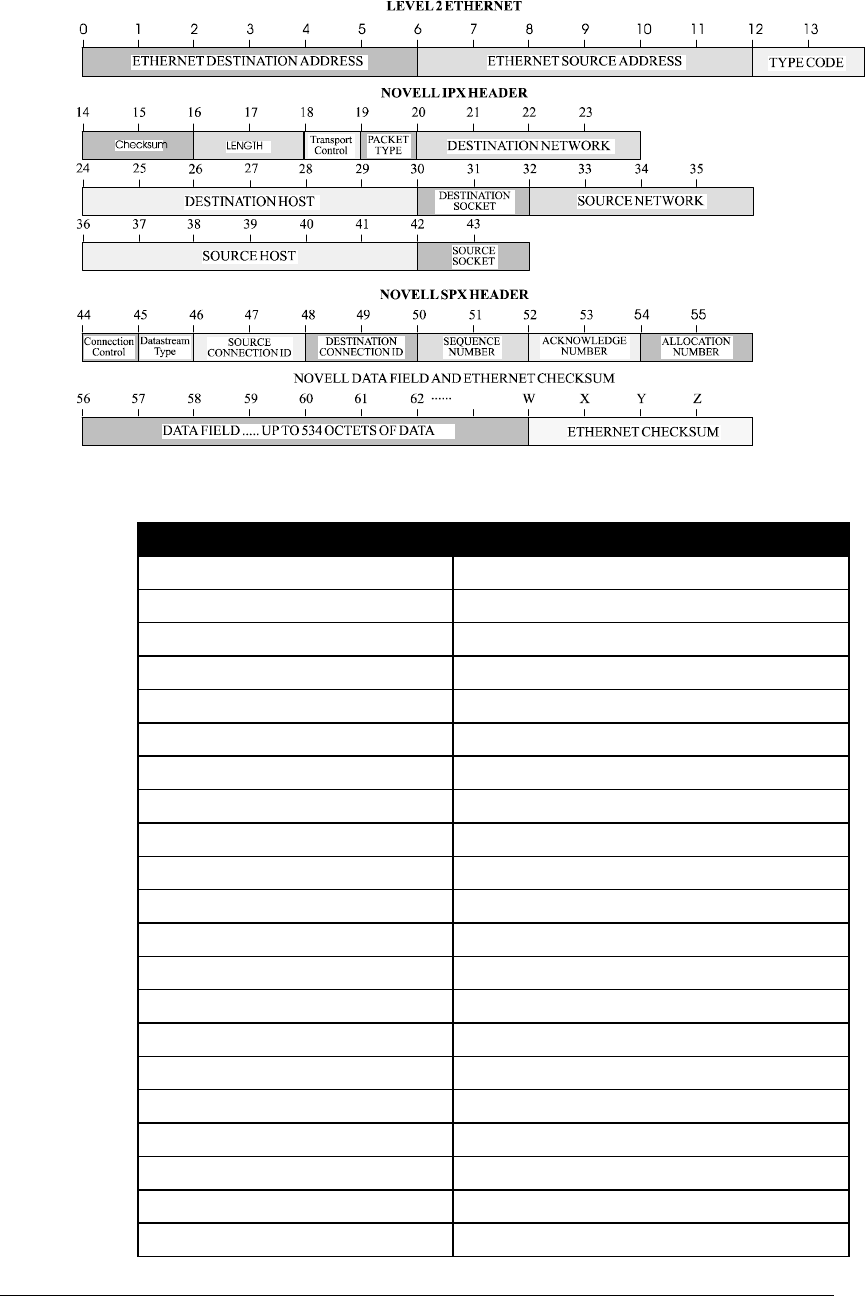 Octet Locations on a Bridged Novell Netware Frame