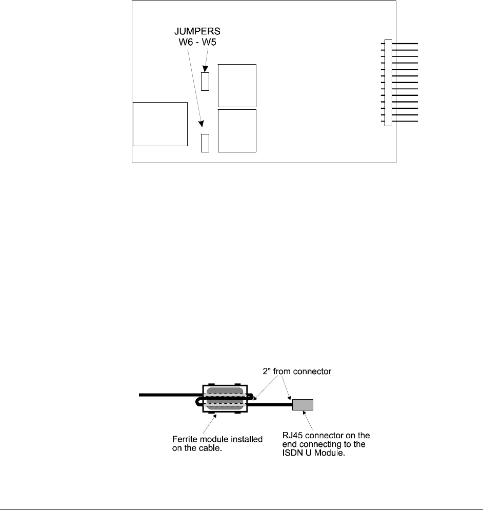 connected to the ISDN U Module. The Ferrite module must be installed approximately two