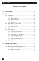 Modem 34336 Table of Contents 1.0 Specifications .....................................................................................6 2.0 Quick Start ..........................................................................................8 2.1 2.2 2.3 2.4 2.5 3.0 Unpacking ................................................................................8 2.1.2 Package Contents......................................................................8 2.1.3 What You Will Need.....................