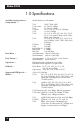 1.0 Specifications Autodialer — Answer Modes — Equalization — Line Requirement — Transmit Timing — Transmit Level — Interface — Carrier Detect Threshold — Test Capabilities — AC Power — Power Consumption — Heat Generation — Ringer Equivalence — Environment — Size (stand-alone unit) — Weight — V.29 QAM at 9600, 7200, and 4800 bps V.27 8-phase DPSK at 4800 and 2400 bps V.26 4-phase DPSK at 2400 and 1200 bps V.23 FSK at 1200/75 bps, full duplex V.22 bis: QAM at 2400 bps; bandsplit, full duplex V.