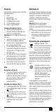 Features Maintenance This appliance includes some or all of the following features: 1. Hook 2. LED light bar 3. Battery status LED 4. On/off/brightness switch 5. 12 Vdc charging socket 6. Mains charging adaptor Your Black & Decker appliance has been designed to operate over a long period of time with a minimum of maintenance. Continuous satisfactory operation depends upon proper care and regular cleaning.