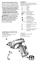 LUCES LED Cuando se activa el destornillador al jalar el interruptor disparador (1), automáticamente se enciende el anillo luminoso (5) incorporado. El anillo luminoso se apaga cuando se suelta el interruptor disparador. DESTORNILLADO Para impulsar remaches, el botón de inversión debe estar empujado hacia la izquierda. Use la inversa (botón empujado hacia la derecha) para retirar remaches. Al cambiar de avance a retroceso, o viceversa, siempre libere el interruptor disparador primero.