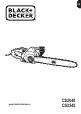 ENGLISH (Original instructions) Intended use Your BLACK+DECKERTM chainsaw has been designed for pruning and felling trees and cutting logs. This tool is intended for consumer use only. Safety instructions General power tool safety warnings @ Warning! Read all safety warnings and all instructions. Failure to follow the warnings and instructions listed below may result in electric shock, fire and/or serious injury. Save all warnings and instructions for future reference.