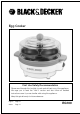 English Intended use • Do not use the appliance near flammable or explosive materials. Your Black and Decker Egg Cooker has been designed for cooking eggs as described in this manual. Do not use this appliance for any other purpose. This product is intended for household use only. • Do not use the appliance outdoors. Safety instructions • Operate the appliance only with dry hands.