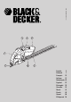 NORSK Du kan få adressen til ditt nærmeste autoriserte serviceverksted ved å kontakte ditt lokale Black & Decker-kontor på adressen oppgitt i denne håndboken. Du kan også finne en komplett liste over autoriserte Black & Decker-serviceverksteder og utfyllende informasjon om vår etter salg-service og kontaktnumre på Internett på følgende adresse: www.2helpU.com Tekniske data Spenning Inn-effekt Slag (ubel.) Knivlengde Tannavstand Knivbremsetid Vekt (unntatt strømledning) Spenning Inn-effekt Slag (ubel.