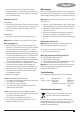 FRANÇAIS ◆ ◆ Desserrez les vis (9) et enlevez-les. Retirez le carter protecteur (4) de l’outil. Dépannage Si l’outil ne fonctionne pas correctement, contrôlez les points suivants : Erreur L’outil ne démarre pas Cause possible Fusible grillé. RCD déclenché Pas d’alimentation électrique. Action Remplacez le fusible Vérifiez RCD Vérifiez l’alimentation du secteur. Protection de l’environnement Collecte séparée. Ce produit ne doit pas être jeté avec les déchets domestiques normaux.