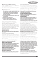 ITALIANO Conservazione dell’utensile dopo l’uso Quando non vengono usati, gli utensili vanno conservati in un luogo asciutto e inaccessibile (sottochiave o in alto), fuori dalla portata dei bambini. Mantenere l’utensile con cura Mantenere gli utensili da taglio affilati e puliti in modo da ottenere una miglior e più sicura resa. Seguire le istruzioni di manutenzione e cambio di accessori. Mantenere le impugnature e gli interruttori asciutti, puliti e senza tracce di olio o grassi.