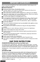 ■ Déplacer avec une extrême prudence un appareil renfermant de l’huile chaude ou tout autre liquide chaud. ■ Pour débrancher l’appareil, saisir la fiche et la retirer de la prise. Ne pas tirer sur le cordon. ■ Utiliser l’appareil seulement aux fins qu’il est prévu. ■ Ne pas utiliser l’appareil lorsque l’air est vicié par des vapeurs explosives ou inflammables. ■ L’appareil est conçu uniquement pour une utilisation domestique et non, industrielle ou commerciale. CONSERVER CES MESURES.