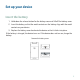 Set up your device Insert the battery 1. Hold down the release button for the battery cover and lift off the battery cover. 2. Insert the battery so that the metal contacts on the battery align with the metal contacts on your device. 3. Replace the battery cover back onto the device so that it clicks into place. If the battery is charged, the device turns on. If the device does not turn on, charge the battery.