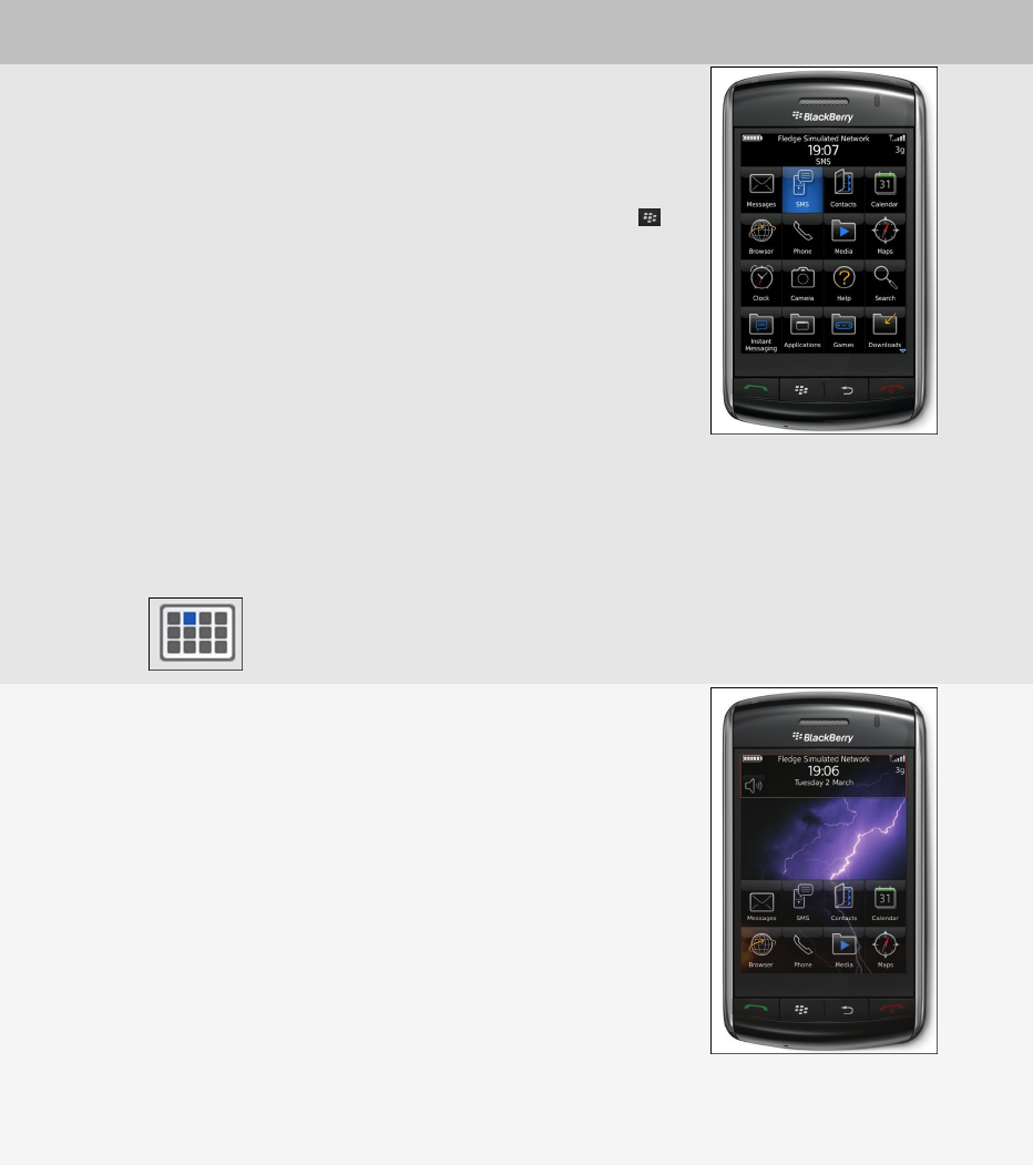 - Customizing a Home screen with a BlackBerry 6 theme layout