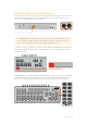 You can now use the rotating knobs below the ‘hyperdeck,’ ‘clip,’ ‘jog’ and ‘shuttle’ indicators to select HyperDecks, select clips, and jog and shuttle these clips. HOME SETTINGS KEYS MIX WIPE DVE STINGER FTB MEDIA PLAYERS BORDER COLOR MACRO SUPER SOURCE CAMERA CONTROL AUDIO 1 2 3 4 5 6 7 8 9 ENTER 0 RESET DIP AUX The text in the center of the HyperDeck control menu will change to reflect the HyperDeck and clip that you have selected.