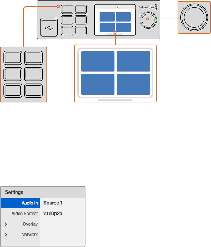 Menu – Press to enter the settings menu for your Blackmagic MultiView 4. You