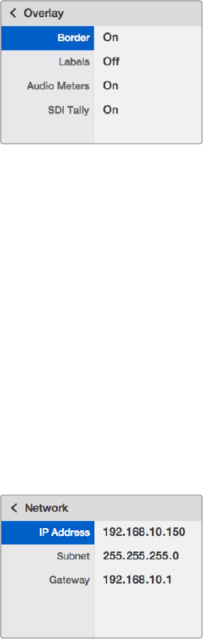 The ‘network’ settings let you set the IP, Subnet and Gateway addresses for your Blackmagic