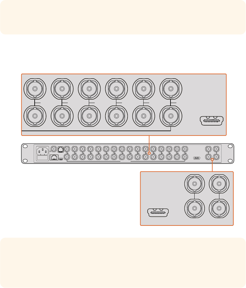 TIP All of Blackmagic MultiView 16’s SDI and HDMI outputs can be used simultaneously