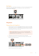If the play button flashes on HyperDecks that record on SSDs, this means the disk is not fast enough and playback cannot keep up. We recommend you change to a compressed recording format such as ProRes or DNxHD, or use a faster recommended SSD for uncompressed or Ultra HD recording. SSD 2 INPUT DISP SET REM 01:42:56:12 JOG SSD 2 DISP INPUT SET REM 01:42:56:12 JOG SSD slots have rotating LEDs to show the unit is in playback mode TIP If you play back a video clip that has an associated .