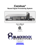 Cerebus® User’s Manual Neural Signal Processor (NSP) Figure 4 - NSP Front Figure 5 - NSP Back The NSP is the real-time processor of the system. It performs all the digital processing of the signals, such as digital filtering, spike extraction, spike sorting. It also processes the data and transmits it to the Host PC through Ethernet UDP protocol. The NSP has multiple analog and digital input and outputs that can be programmed through the software or one of the supplied Software Development Kids (SDKs).