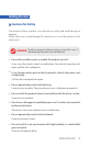 4 5 Use the cable clip to organize the power cord so that it doesn't interfere with the driver's vision. Adjust the lens angle of the camera. Note yy After adjusting the angle of the camera lens, remember the angle of the mounting bracket so that it can be installed at the same angle next time. yy With smartphone and Wi-Fi connections, it is possible to adjust the angle of the camera lens while watching real-time video. (22 Page) 6 Start the engine and check if the product works properly.