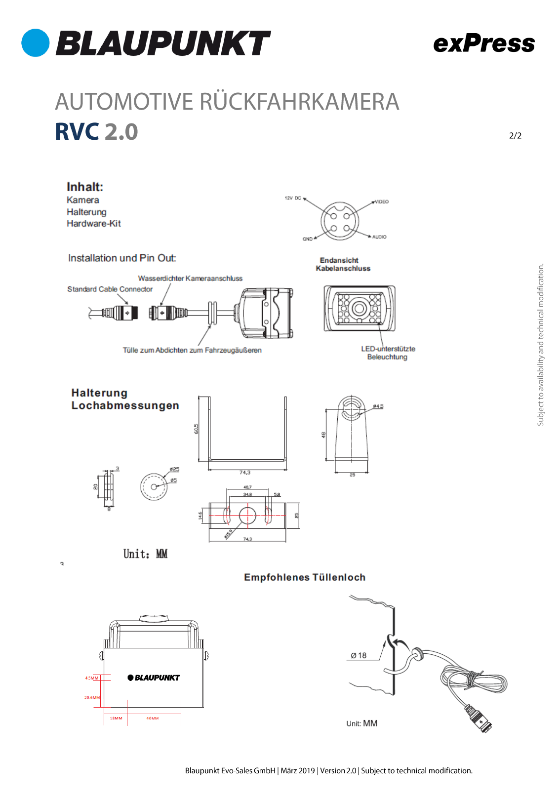 Blaupunkt RVC 2.0 Rearview camera (corded) IR add-on light White