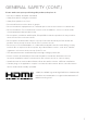 GENERAL SAFETY (CONT.) IMPORTANT INFORMATION • Do not expose this appliance to rain or moisture as it may result in fire or an electric shock hazard • Do not tamper or change or modify the product in any way. • Only use Accessories outlined and recommended by the manufacturer. • Please do not expose the product to splashing or water contact • Please do not place any object on top of the product including objects filled with liquids such as vases. • Danger of explosion if battery is incorrectly placed.