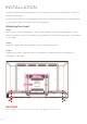 INSTALLATION Install the stand as described below, or if you want to mount it to a wall, please contact a professional installer. Please ensure the TV is not plugged into the wall socket and furthermore we recommend to get another person to assist in the following task. Attaching the stand Step 1 Place a soft cushioned material on top of a flat surface to prevent damaging the screen panel. Then place the TV screen flat on top, with the screen side facing down, as illustrated on the right.
