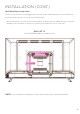 INSTALLATION (CONT.) Wall-Mounting Instructions Please ensure the TV is not plugged into the wall socket and furthermore we recommend to get another person to assist in the following task. • We recommend you use a professional installer as we assume no liability for any eventual damage to the product or injury to yourself if you mount the TV on your own. BACK OF TV VESA PATTERN: 200 (w) x 200 (h) mm NOTE: If you are wall-mounting the TV, this should be done by a qualified installer.