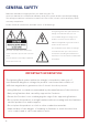 GENERAL SAFETY (CONT.) IMPORTANT INFORMATION • Do not expose this appliance to rain or moisture as it may result in fire or an electric shock hazard • Do not tamper or change or modify the product in any way. • Only use Accessories outlined and recommended by the manufacturer. • Please do not expose the product to splashing or water contact • Please do not place any object on top of the product including objects filled with liquids such as vases. • Danger of explosion if battery is incorrectly placed.