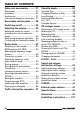 TABLE OF CONTENTS Notes and accessories .......... 27 Cassette mode ....................... 38 Road safety ................................... 27 Installation ..................................... 27 Accessories .................................. 27 International telephone information . 27 Cassette Play ................................ 38 Changing Direction of Play ............ 38 Fast Winding ................................. 38 Switching Radio Monitor On / Off ........................................