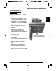 OPERATION Changing the light bulb ➮ Detach the monitor from the ceiling plate (4 screws). Light bulb specifications Diameter: 8 mm Length: 28 mm Voltage: 12 V, 3 W Changing the battery in the remote control ➮ Push the button on the battery compartment J to the right (see A below). ➮ Pull the battery compartment J Screws for securing the ceiling-mounted monitor out of the remote control (see B below). ➮ Change the 3 V battery (CR 2025). ➮ Remove the 8 screws from the rear.