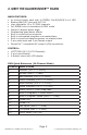 DMX Values In-Depth (32-Channel Mode, continued) Channel Value What It Does 7 000 <--> 255 2nd Head - Red Intensity (0% <--> 100%) 8 000 <--> 255 2nd Head - Green Intensity (0% <--> 100%) 9 000 <--> 255 2nd Head - Blue Intensity (0% <--> 100%) 10 000 <--> 255 2nd Head - White Intensity (0% <--> 100%) 11 000 <--> 255 3rd Head - Red Intensity (0% <--> 100%) 12 000 <--> 255 3rd Head - Green Intensity (0% <--> 100%) 13 000 <--> 255 3rd Head - Blue Intensity (0% <--> 100%) 14 000 <--> 25