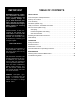 TABLE OF CONTENTS IMPORTANT WARNING: Improper installation, adjustment, alternation, service or maintenance can cause property damage, injury or death. Read the instllation, operation and maintenance instructions thoroughly before installing or servicing this equipment. INSTRUCTIONS TO BE FOLLOWED IN THE EVENT THE USER SMELLS GAS MUST BE POSTED IN A PROMINENT LOCATION. This information may be obtained by contacting your local gas supplier.