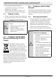 Important instructions regarding safety and environment • Do not place vessels filled with liquid onto the product. Splashing water on an electrical part may cause electric chock or the risk of fire. • Do not store items that need precise temperature adjustment (such as vaccines, heat-sensitive medication, science materials etc.) in the refrigerator. • If you are not going to use the product for a long time, unplug it and remove the food in it.