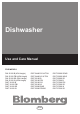13. WARRANTY STATEMENT FOR THE BLOMBERG DISHWASHERS The warranties provided by Blomberg in these statements only apply to Blomberg dishwashers sold to the original purchaser or homeowner in the US and Canada. The warranty is not transferable. To obtain warranty service, please contact our nearest distributor as listed by state. You will need your dishwasher model number, serial number, retailer name and address, where purchased and purchase date / installation date.