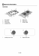 fl General information Overview Pan support 5 Base cover 2 Spark plug & Rapid boomer 3 Control pane! 7 Burners' plate 4 Auxiliary boomer Auxiliary burner Front 2 Rapid boomer Rear 4]EN