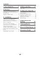 CONTENTS 1 Your refrigerator 3 4 Before operating 16 Final Check...................................... 16 2 Warnings 4 ELECTRICAL REQUIREMENTS.......... 5 WARNING! THIS APPLIANCE MUST BE EARTHED..................................... 5 ENERGY SAVING TIPS....................... 6 3 Installation 7 Points to be considered when retransporting your refrigerator.............. 7 Before operating your refrigerator....... 7 Electric connection............................. 7 Disposing of the packaging......