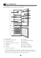 1 Your refrigerator Congratulations on your choice of a BLOMBERG quality Appliance which has been designed to give you service for many years. 9 1 2 10 3 9 13 3 9 13 11 3 4 12 9 5 6 7 14 7 7 8 1. 2. 3. 4. Interior light Temperature setting knob 1 Adjustable shelves Defrost water collection channel Drain tube 5. Crispers 6. Ice bank 7. Freezer compartment • 8. 9. 10. 11. 12. 13. 14.